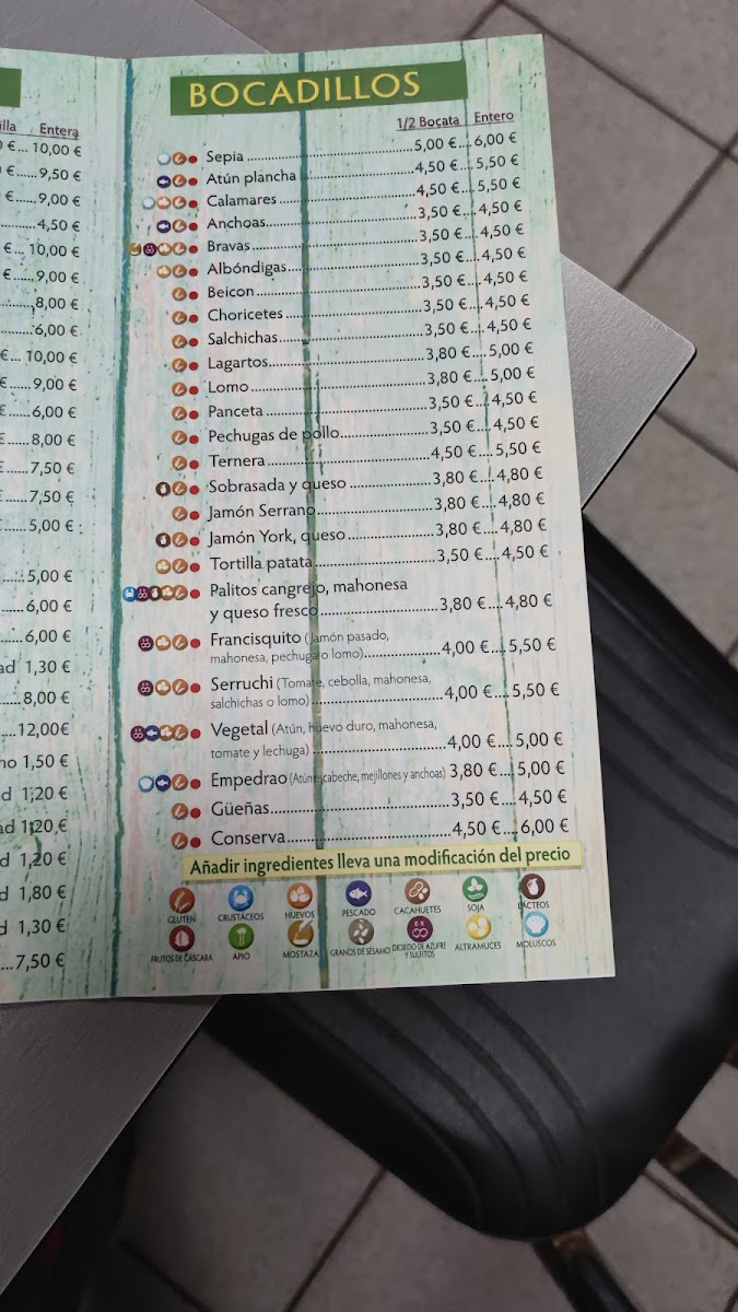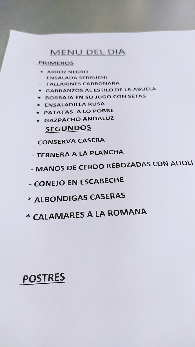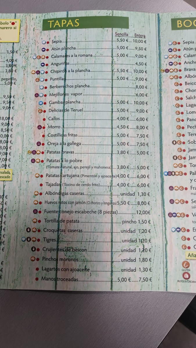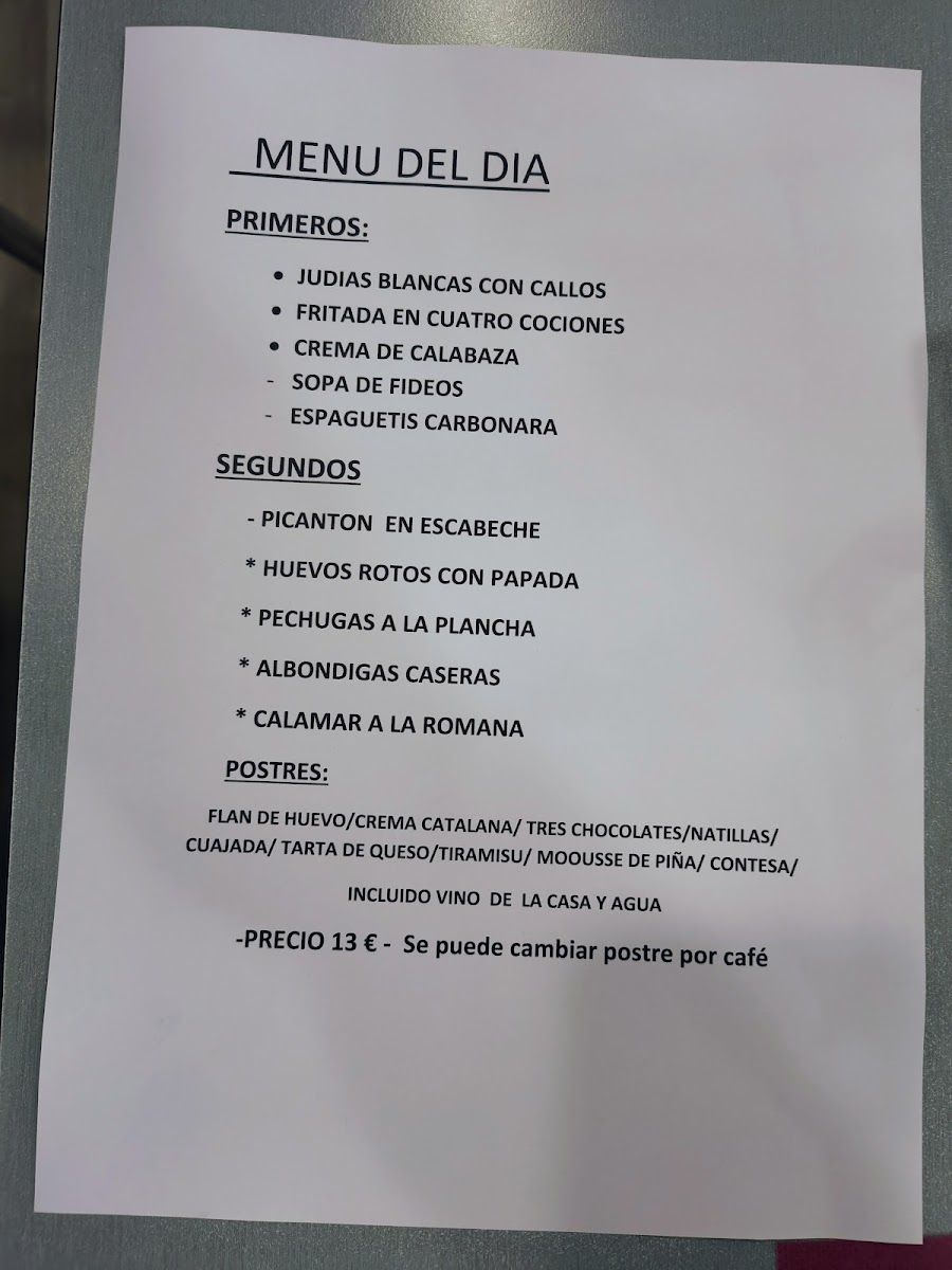 The menu is primarily designed for tapear (tapas-style sharing) and casual meals, making it suitable for families, groups, or individuals seeking a range of local dishes in a bar and restaurant setting. Quick orders at the bar or a more relaxed sit-down dining experience are both common uses.